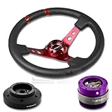 NRG-SRK-101H+016R-RD+200PP, NRG Innovations 13.78" 350mm 3" Deep Dish Style Black Leather Red Center Marking Red Spokes Racing Steering Wheel Combo with 6 Hole Short Hub Adapter with Gen 2.0 Purple Quick Release Kit SRK-101H